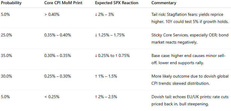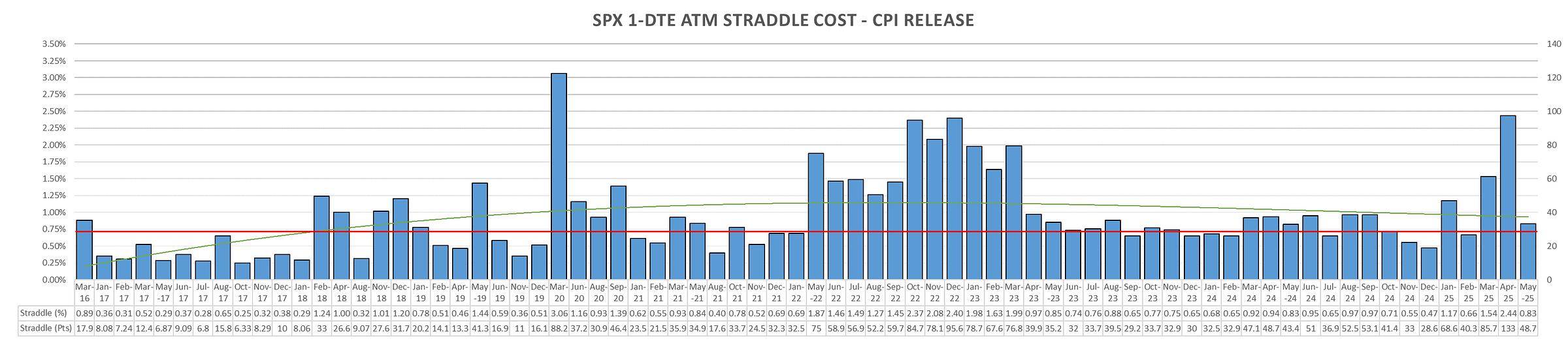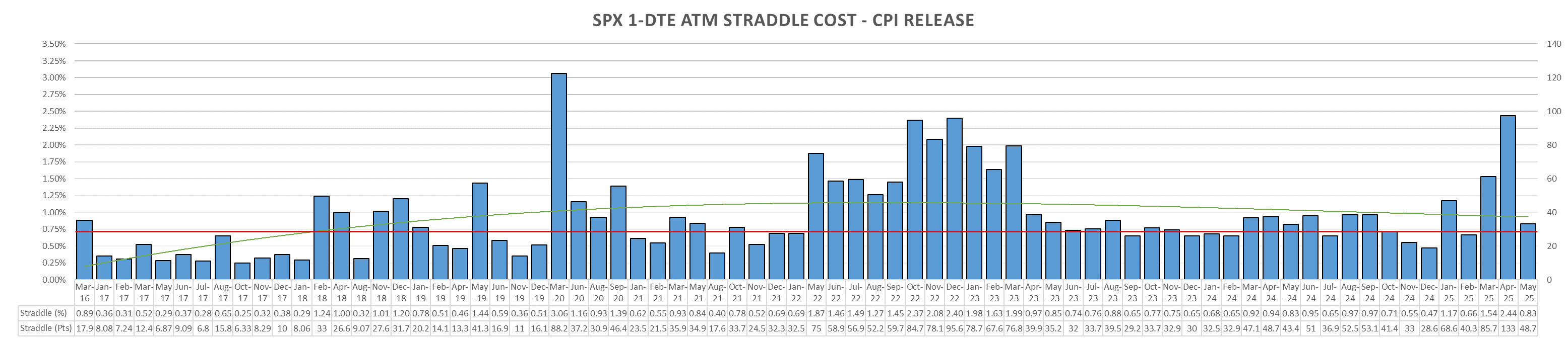 US CPI for May set to come out tomorrow morning, SPX straddles trading at ~73bps going into tmrw: