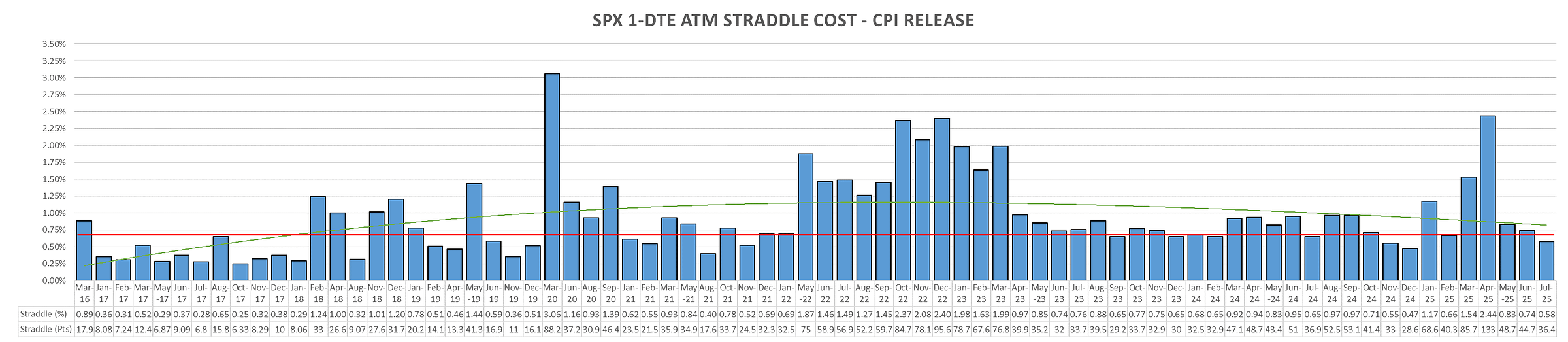 SPX straddles at 70 bps for tomorrow. Fairly in line with average post 2022 CPI release.