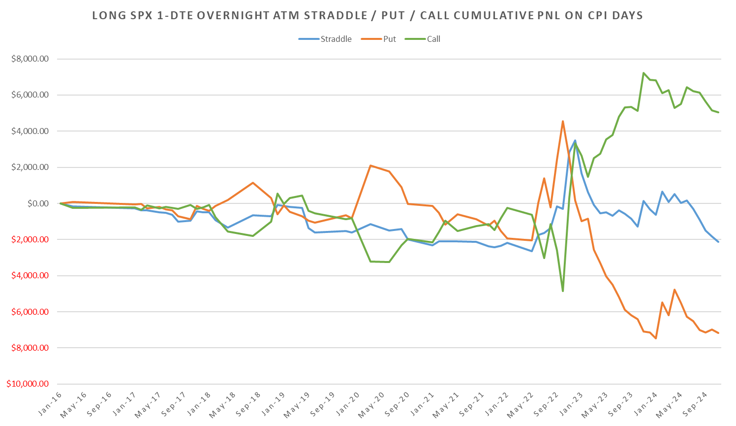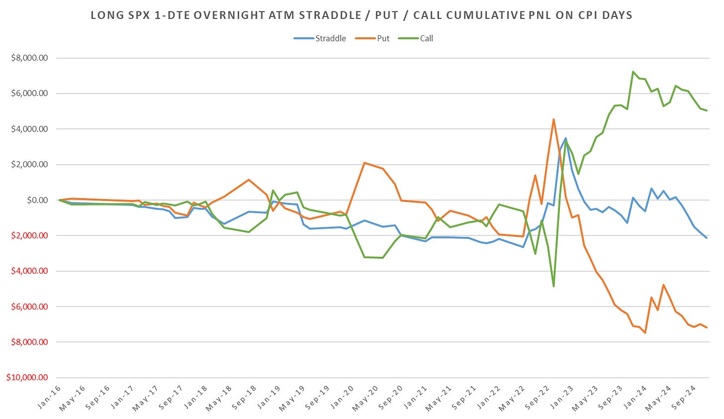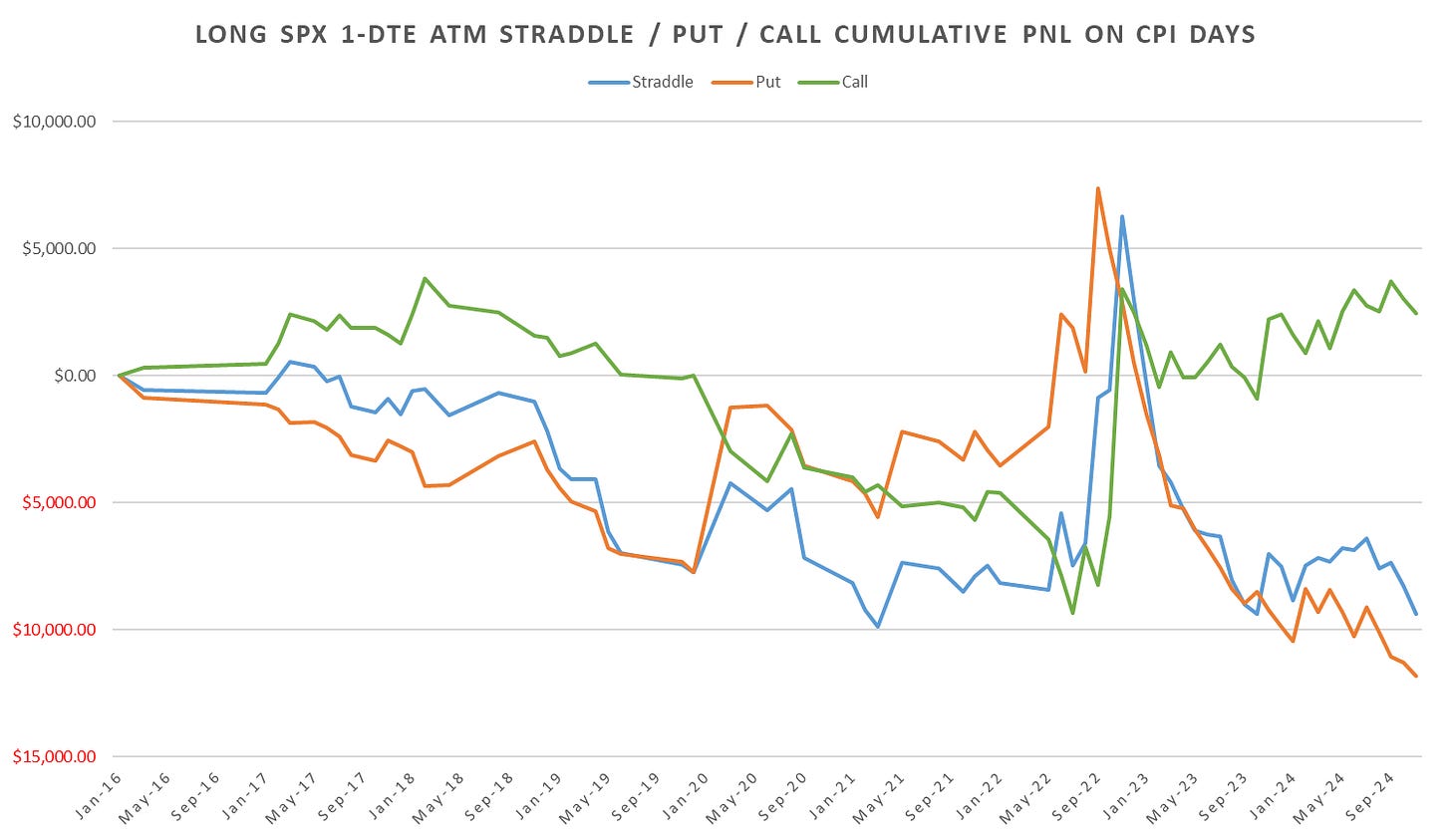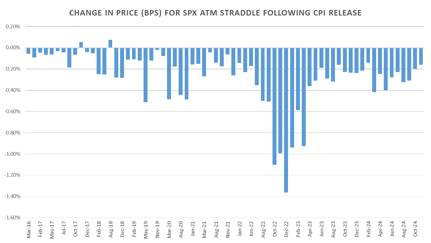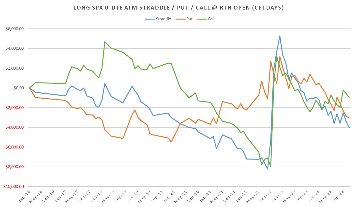 Long CPI day straddles now down ~54pts for 2024, peaking at +31pts by July and flushing ~85pts starting with the Aug CPI through Nov.