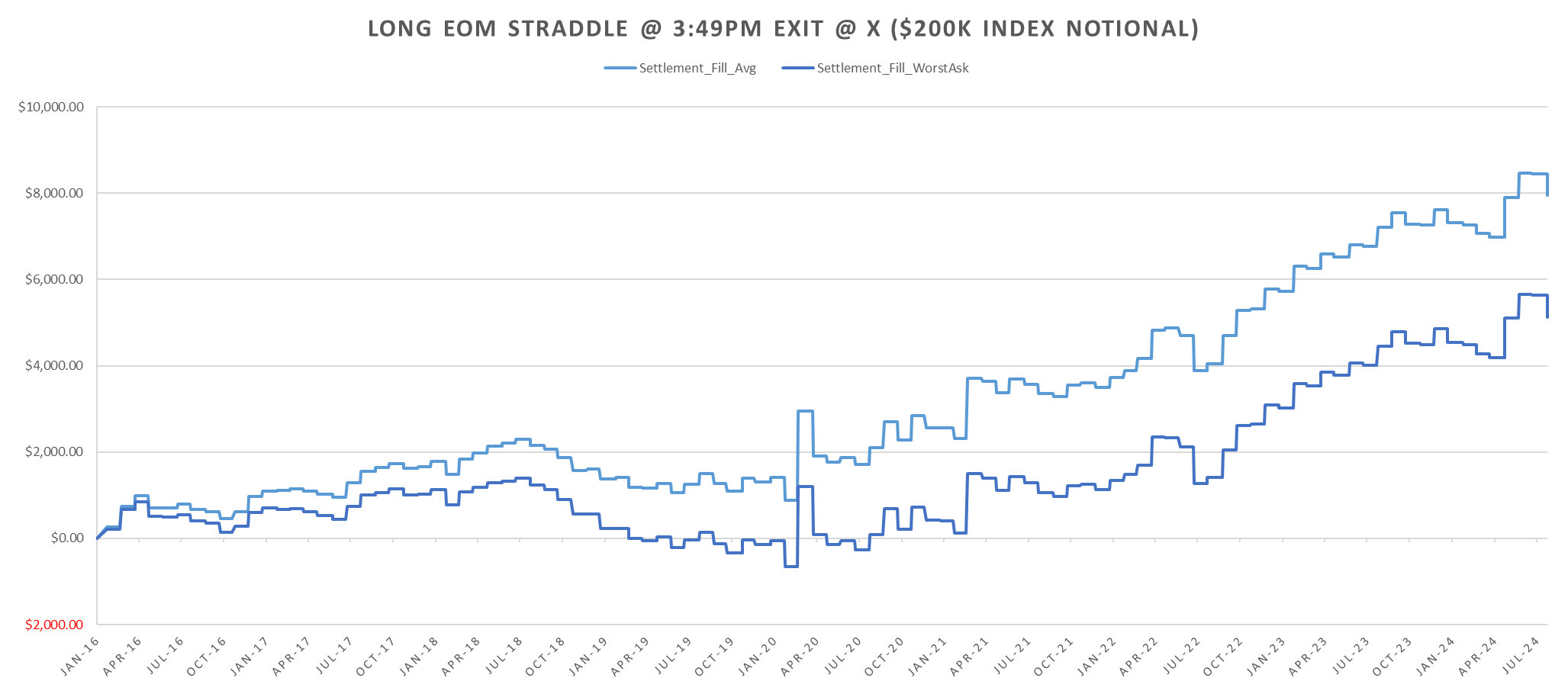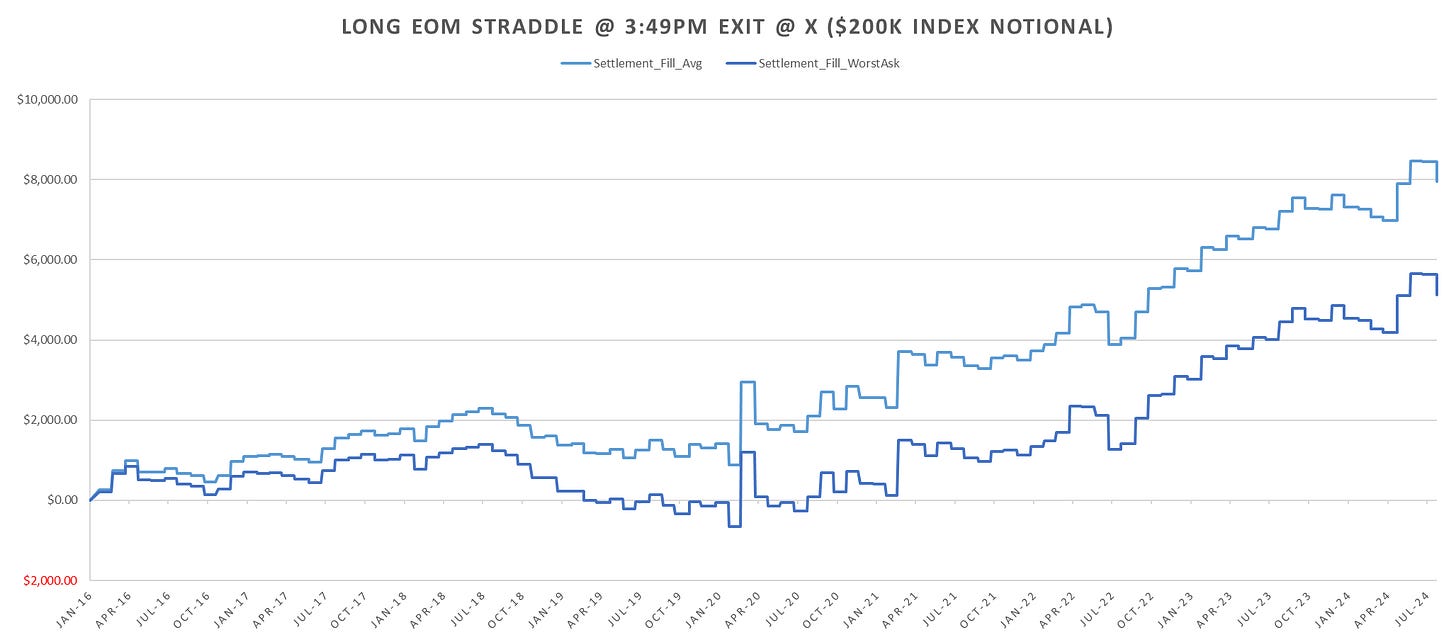 July was a loss for the eom straddles following a few fairly exciting months earlier this year. Despite the almost 10% roundtrip in August, SPX is set to close 1% up on the month.