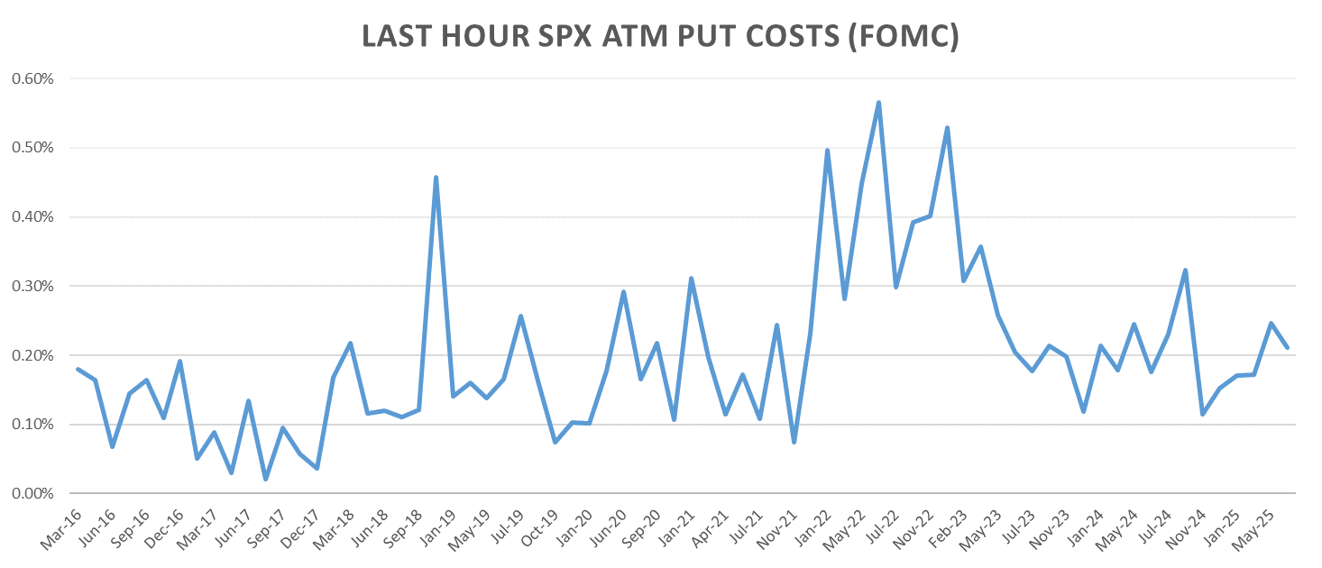 Overall implied vol dropped heavily in July, reflected in one of the cheapest FOMC straddles since 2020 at ~ 55bps.