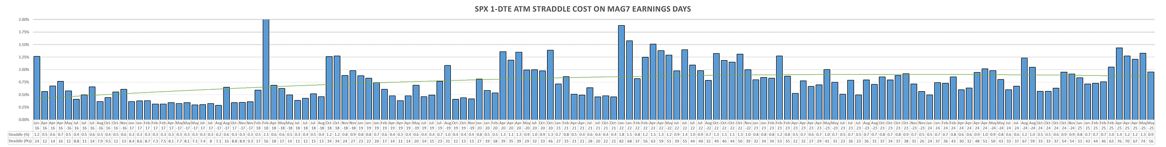 1-DTE SPX straddles currently only trading ~50bps for tomorrow despite Google & Tesla earnings (lows of the 3 year range.) This is the result of implied correlations dropping to near last years lows (1m icorrs down from ~15% to 10% in last few days.)