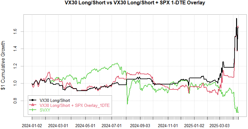 killed it for the long VX trades into April. So far great performance into almost every *major* crisis we’ve had (Covid, 2018 XIV blowup and a few others.) Got whipsawed a few times on small vol spikes (then again who knows if its a short vol spike or not at the time) but that’s the price you pay for periods like now.