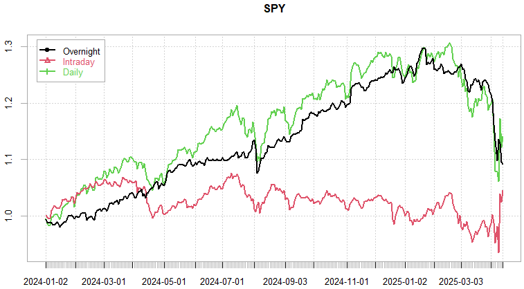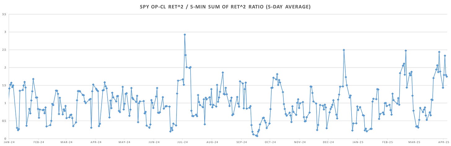 Looking at the intraday cross-section, last hour momentum best performing period since Jan. Nasty spike on Wed intraday put the worst period (1PM-2PM) back to positive from 2024 start.