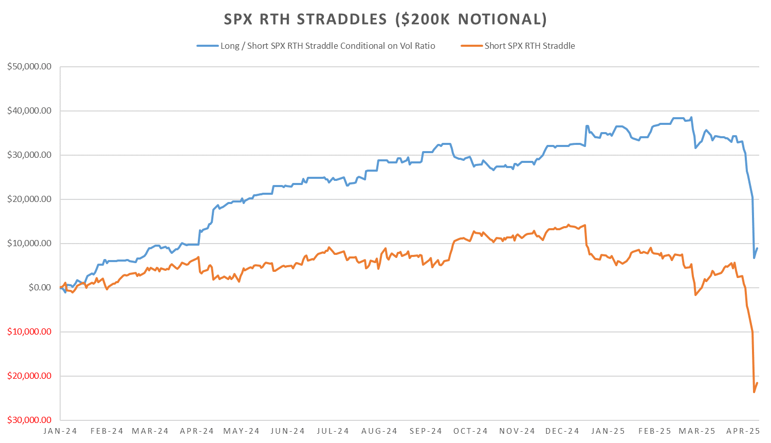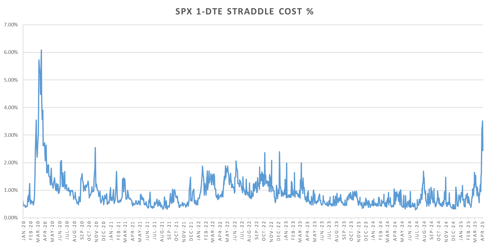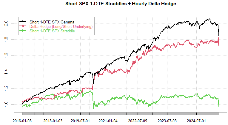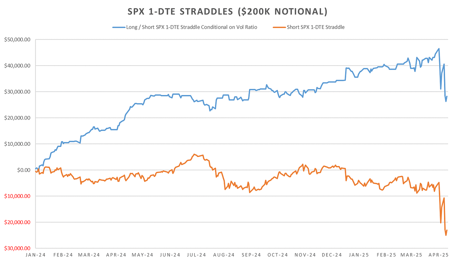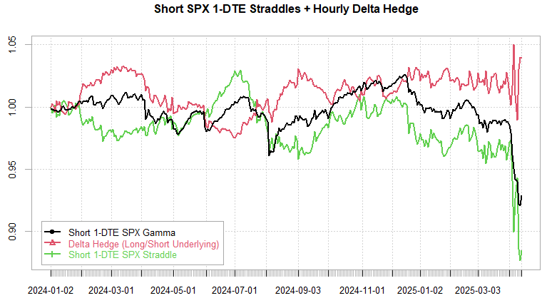 Short 1-DTE delta hedged SPX straddles had a 10-day(!) loss streak, that’s with implieds blowing out post announcement to near Covid levels… Friday first (tiny) positive win for short delta hedged straddles.