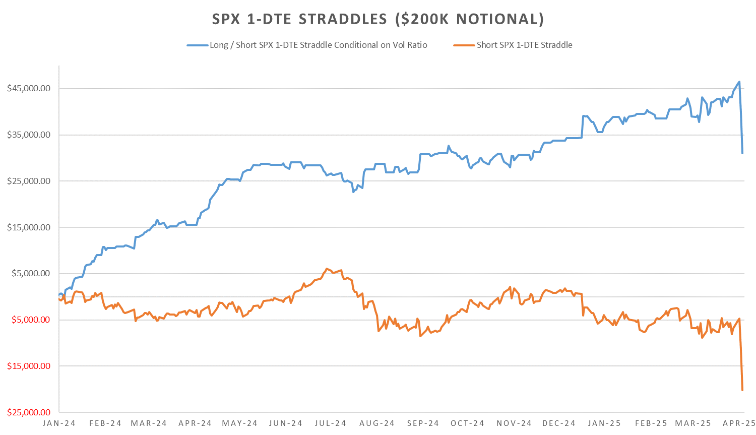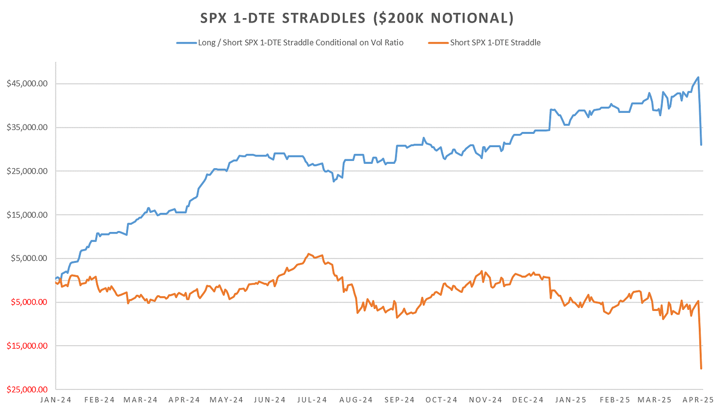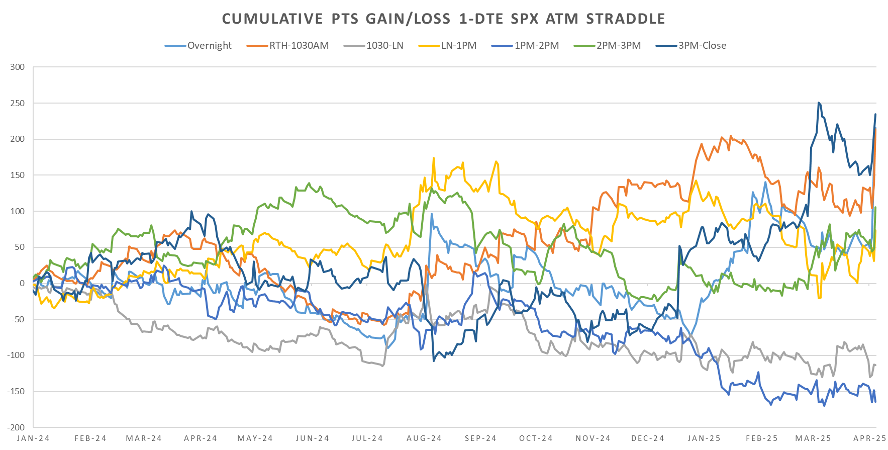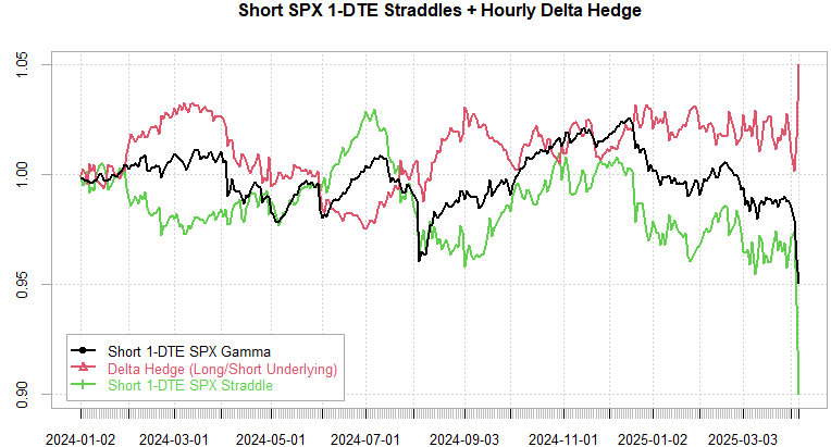 The upside is both 2020 and Aug 2024 events saw short 1-dte delta-hedged straddles perform exceptionally well following the risk events. I think we are now at that point again where shorting 1-dte straddles and delta hedging intraday should do very well next few months.
