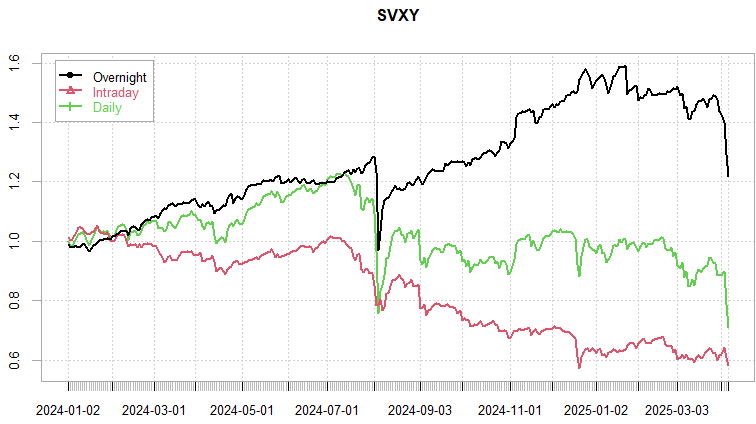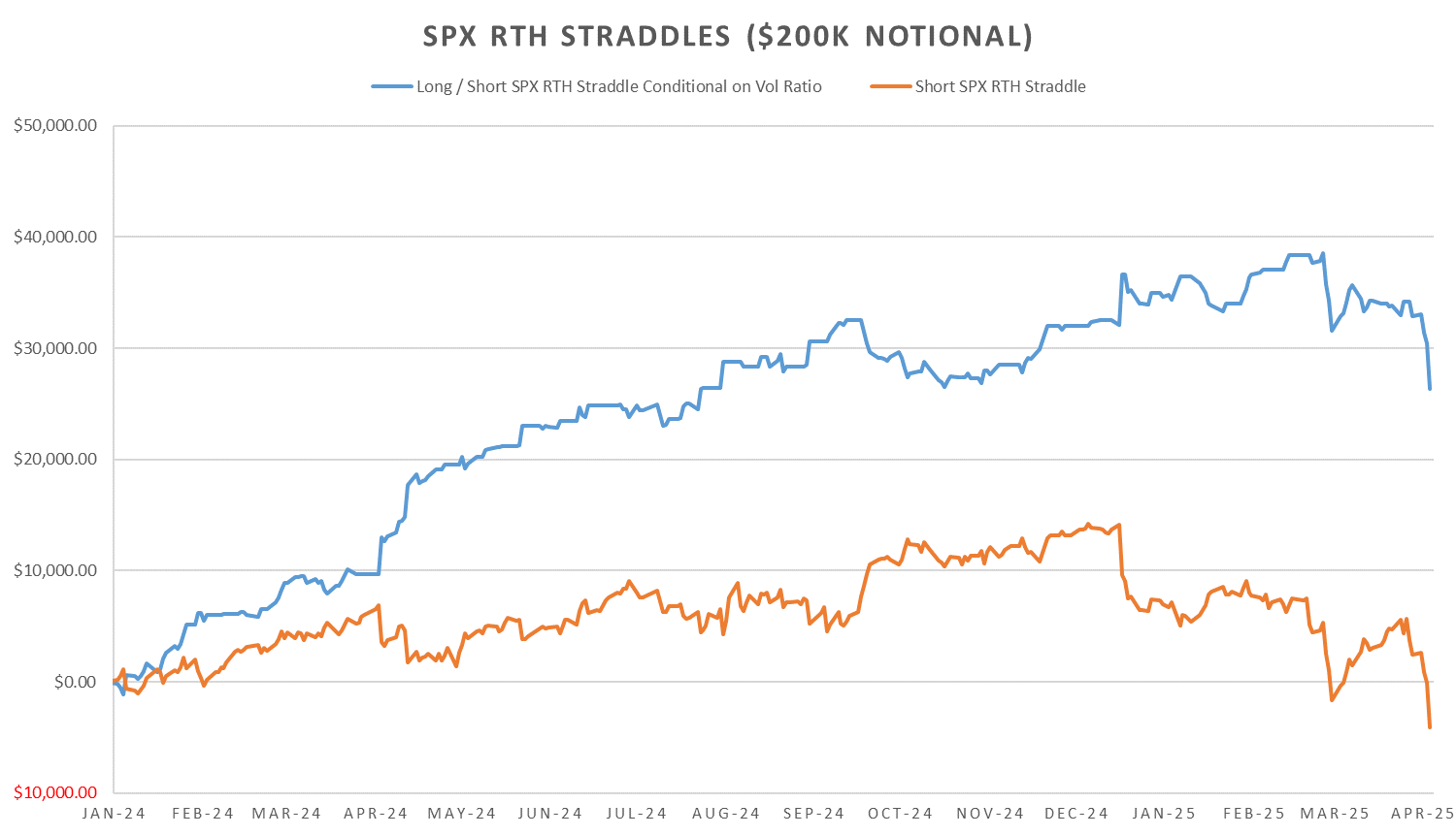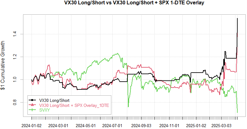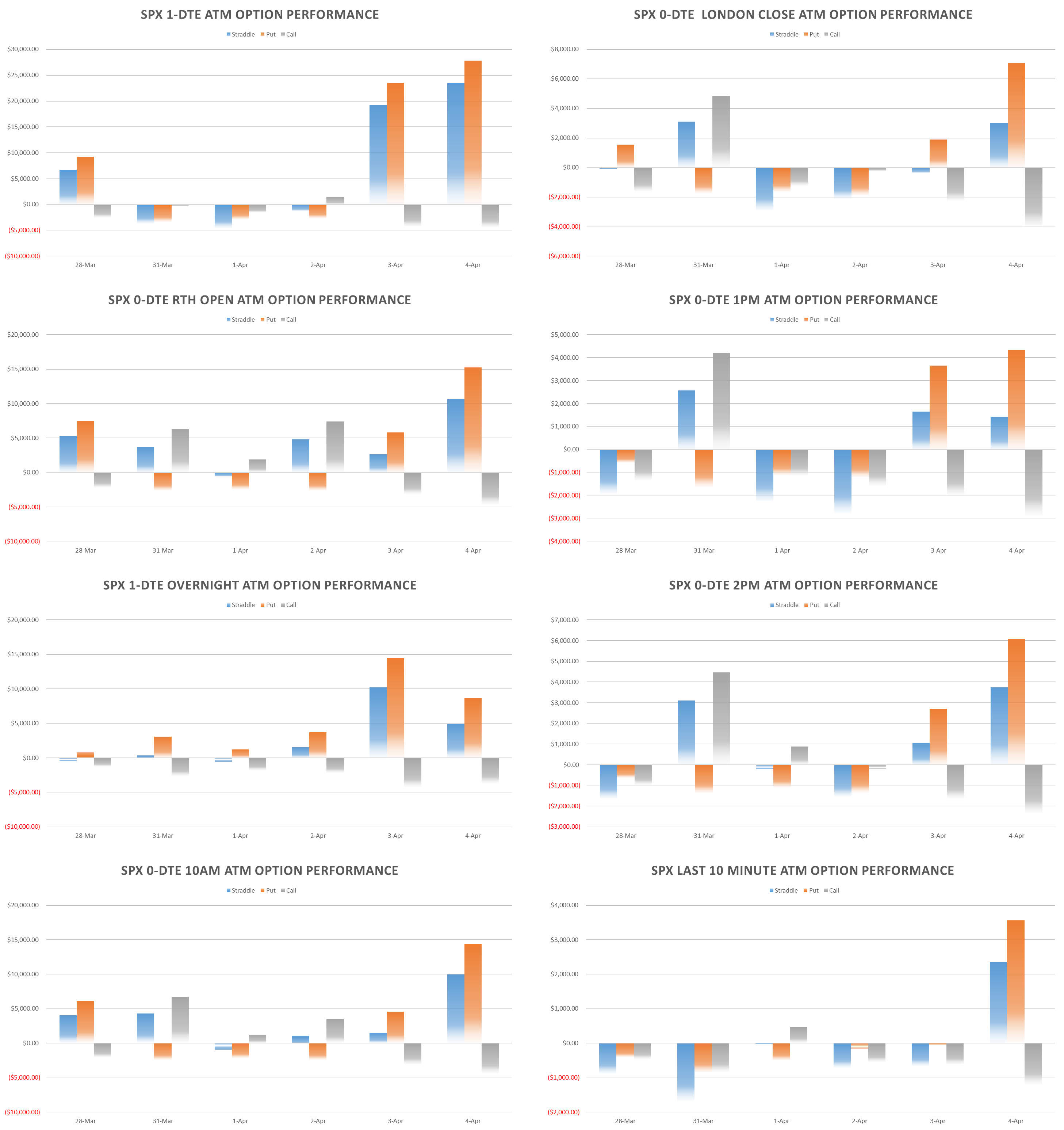 The upside is both 2020 and Aug 2024 events saw short 1-dte delta-hedged straddles perform exceptionally well following the risk events. I think we are now at that point again where shorting 1-dte straddles and delta hedging intraday should do very well next few months.