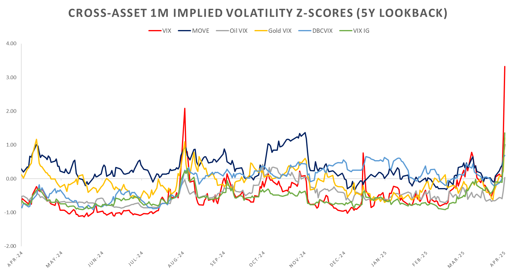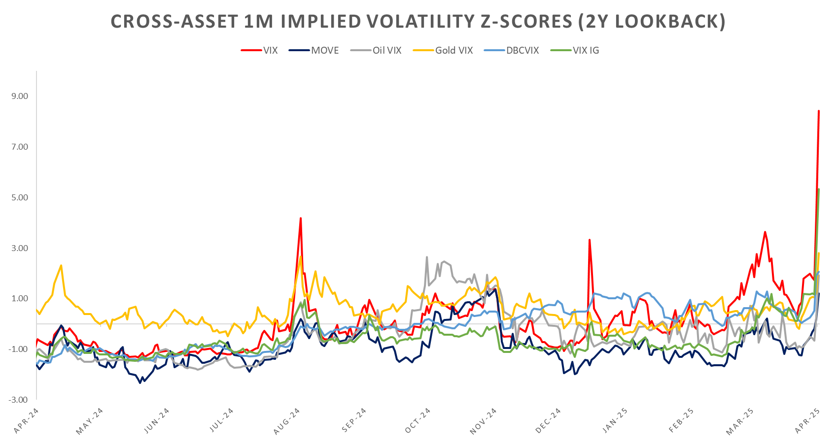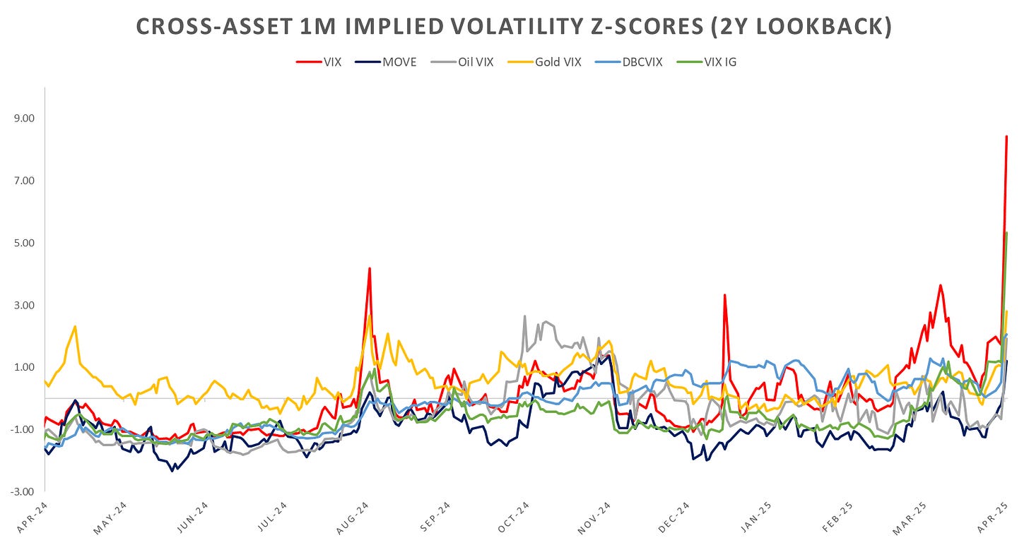 Cross-asset vols all higher, equity leading, oil cheapest… biggest shock since Covid, as mentioned this will linger in risk models for a while.