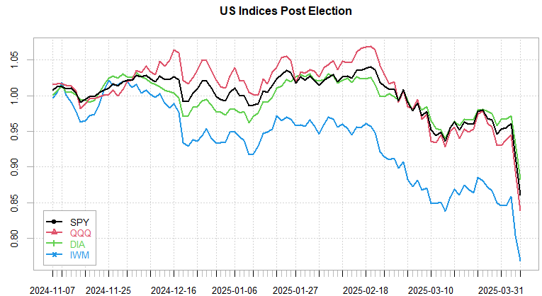 Corr=1 across the board as everything sold. Small caps worst off, now back to 2020 levels.