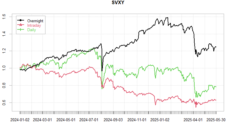 Short 1-DTE SPX delta hedged straddles (hourly) flat since early May despite SPX being stuck in a range. We still have alot of overnight moves but they largely get retraced for low cl-cl vol.