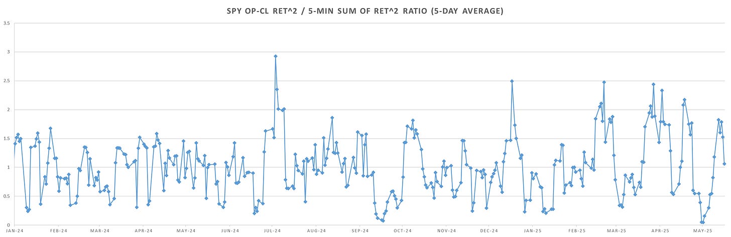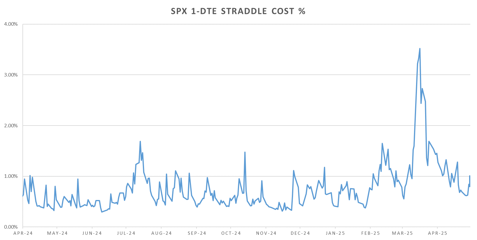 1-DTE SPX Straddles briefly traded lower just to end up back above 1% for the long weekend after the European tariffs headlines.