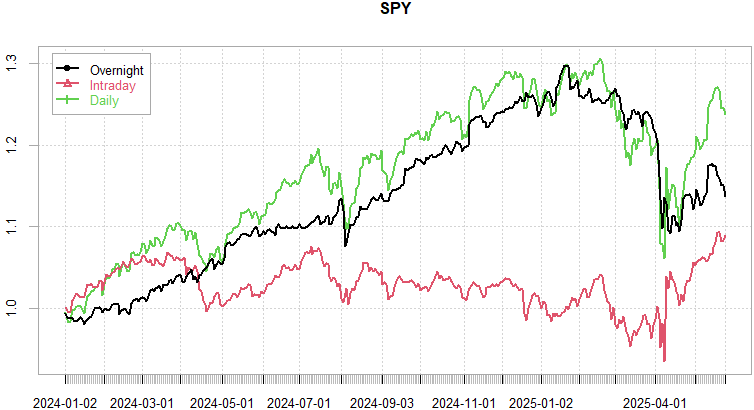 US RTH session almost vertical higher from April 3rd lows… Overnight session largely flat since the tariff announcement.