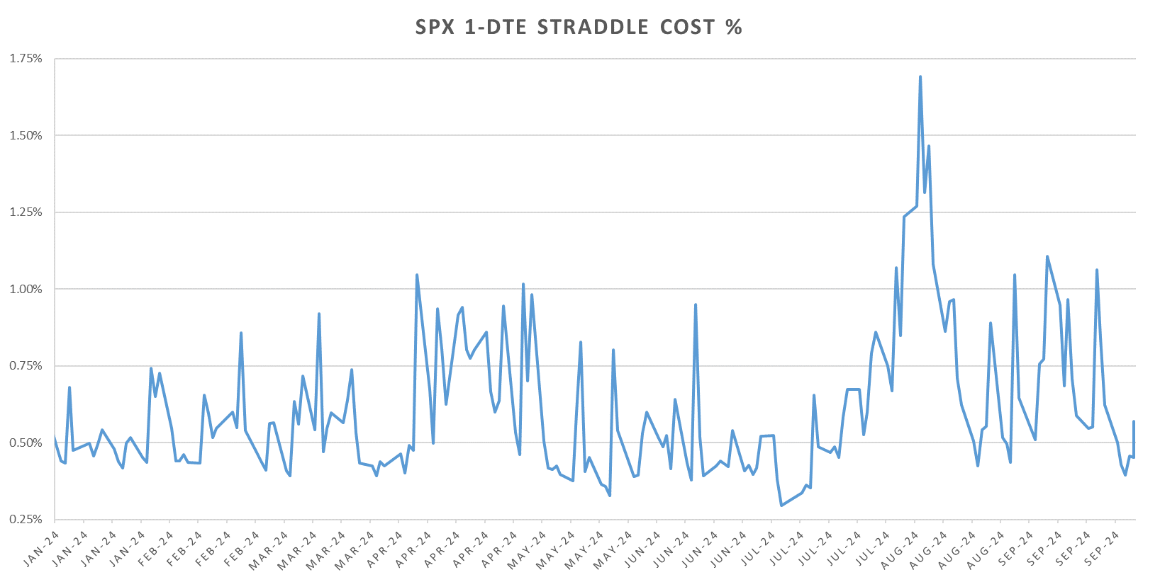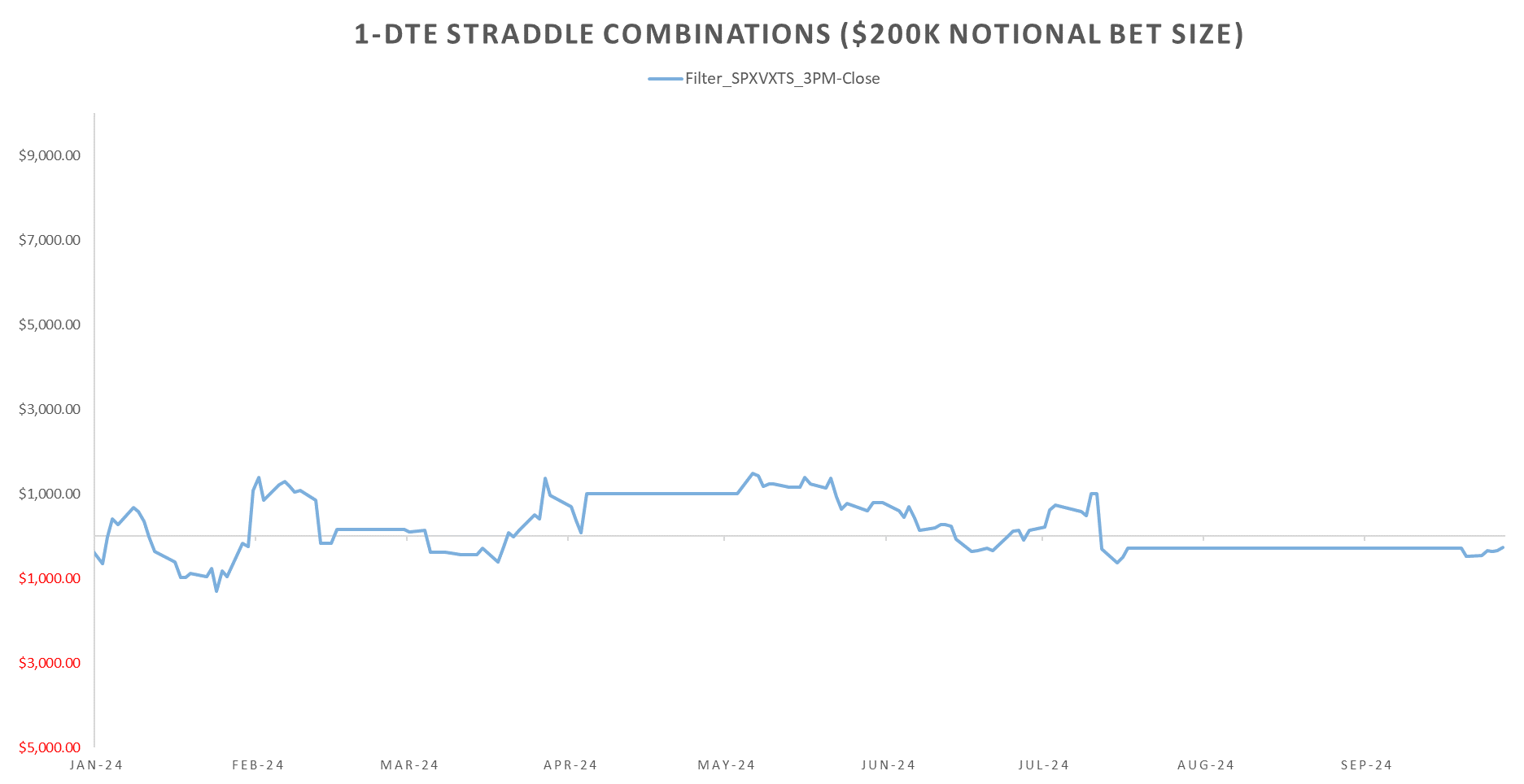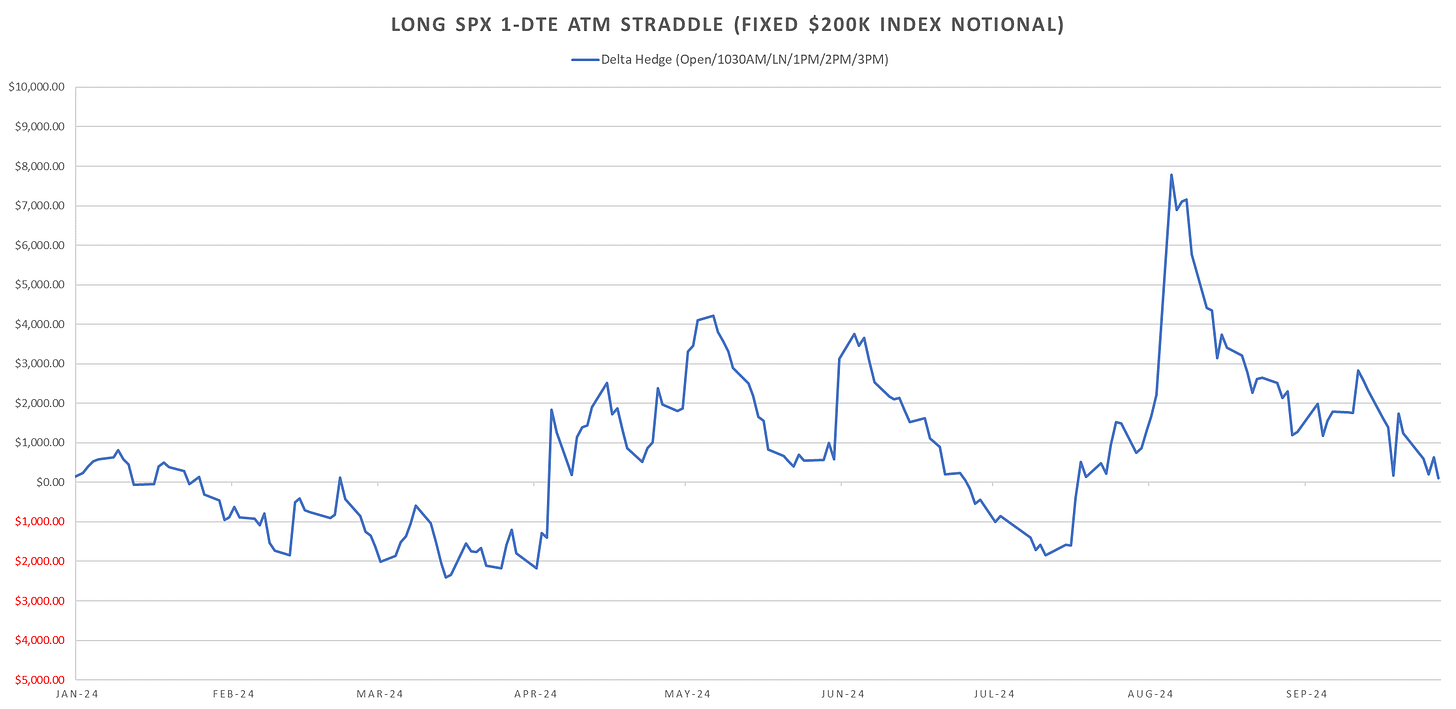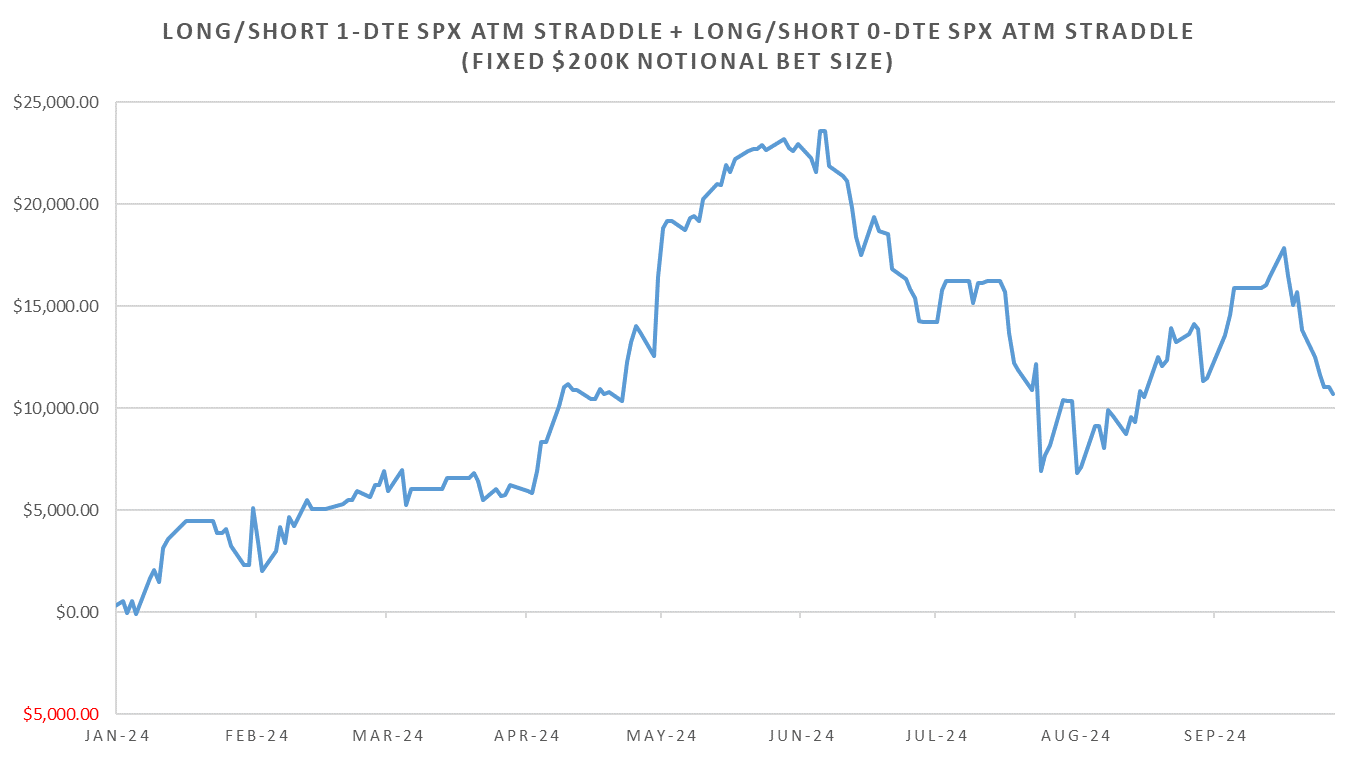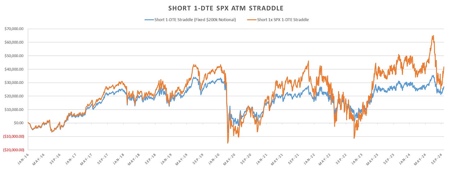 Rolling short 1-DTE straddles coming back a bit last few weeks but largely shorting 1-DTE SPX straddles ~flat since Jan 2023… almost 2 years of no short net premium gains.