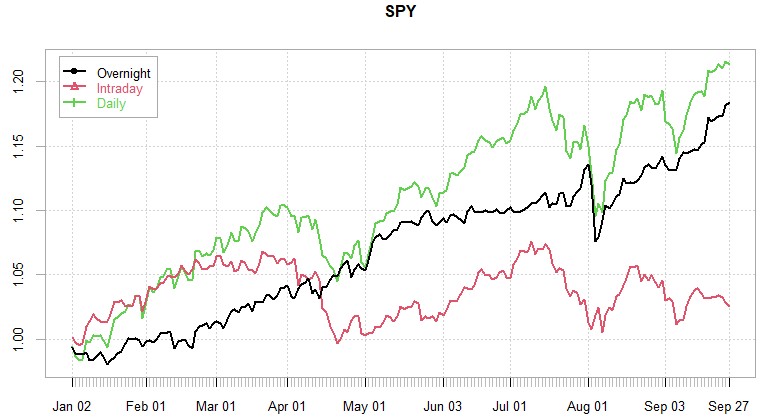 SPY remains net red for September during the RTH session… up almost 5% during the overnight session, same pattern as almost entire year. Almost 4+ sharpe for overnight performance YTD, one of the best years so far for overnight performance.