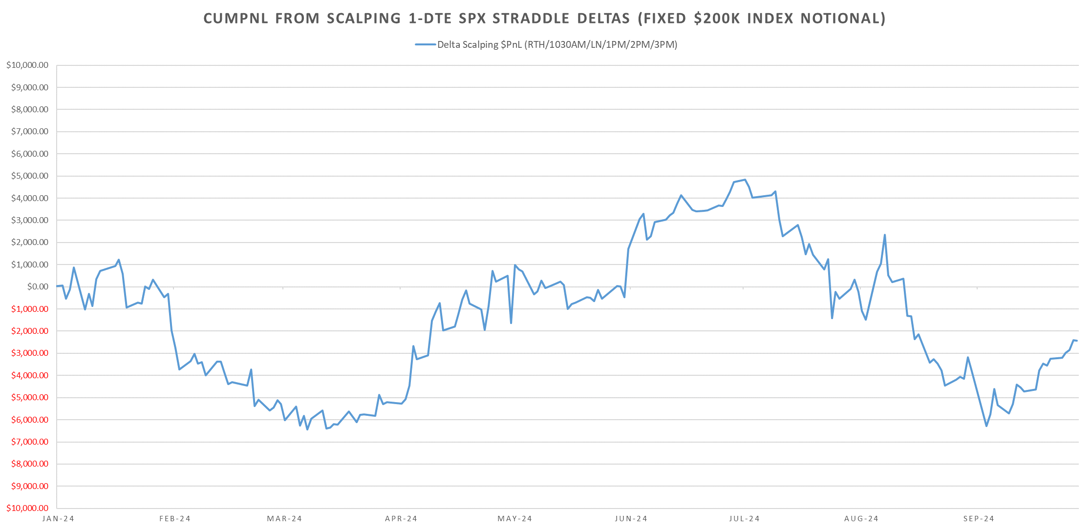 Majority of the moves were reserved for first few hours of the trading day, with SPX largely flat into eod, resulting in no opportunity to scalp enough deltas to offset theta decay. In summary, gap up → scalp deltas back to flat → grind sideways into close…