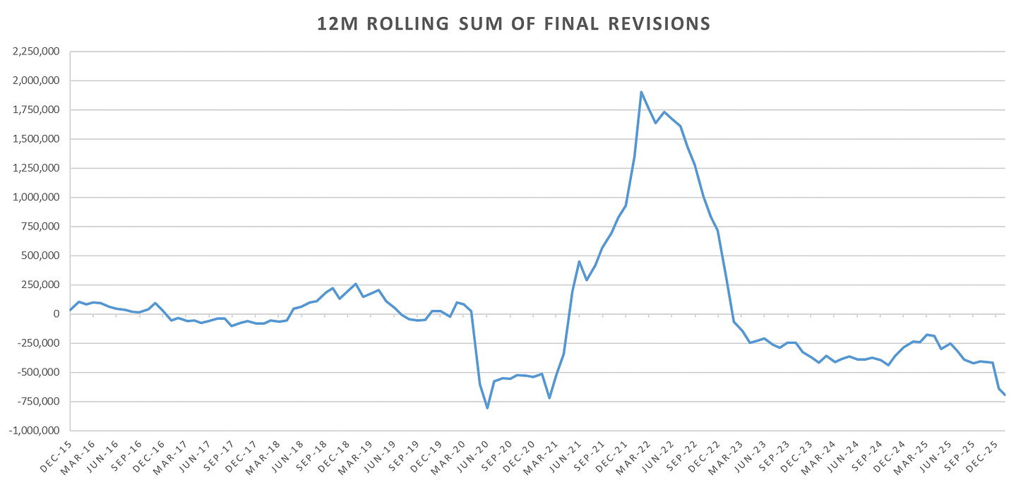 First revisions continue to come in negative albeit adjustments are much smaller than last year.