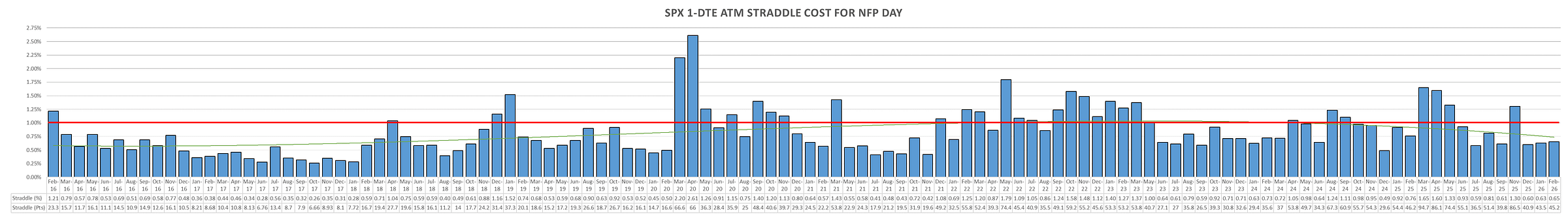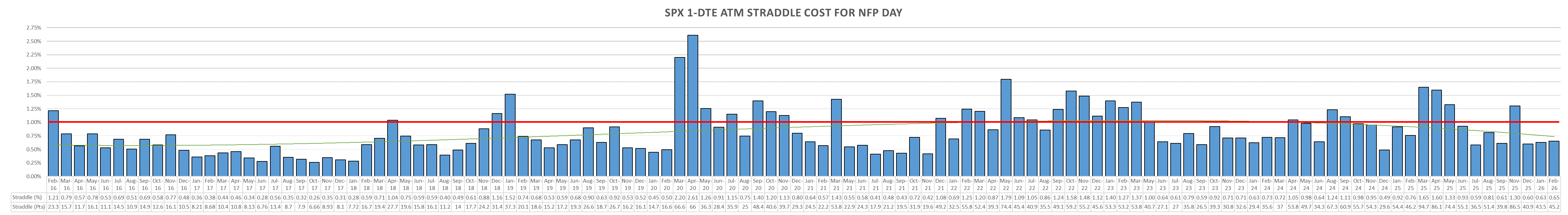 ~100 bps SPX straddles for tomorrow as a result of higher latent ivol & small NFP premium.