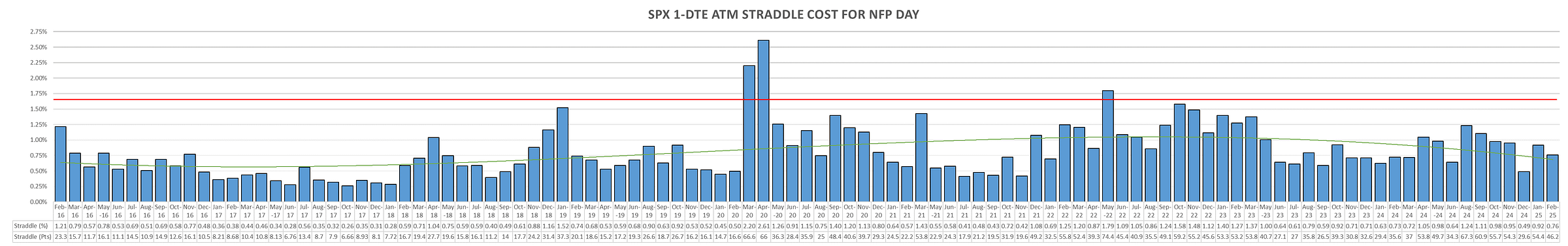 Currently trading at ~160bps (peaked 165), this is the most expensive SPX NFP straddle since 2020 and one data release in 2022… market getting a little ahead of itself.