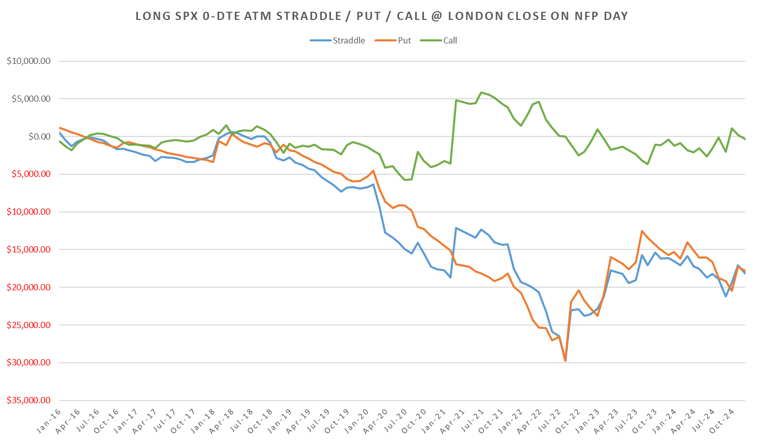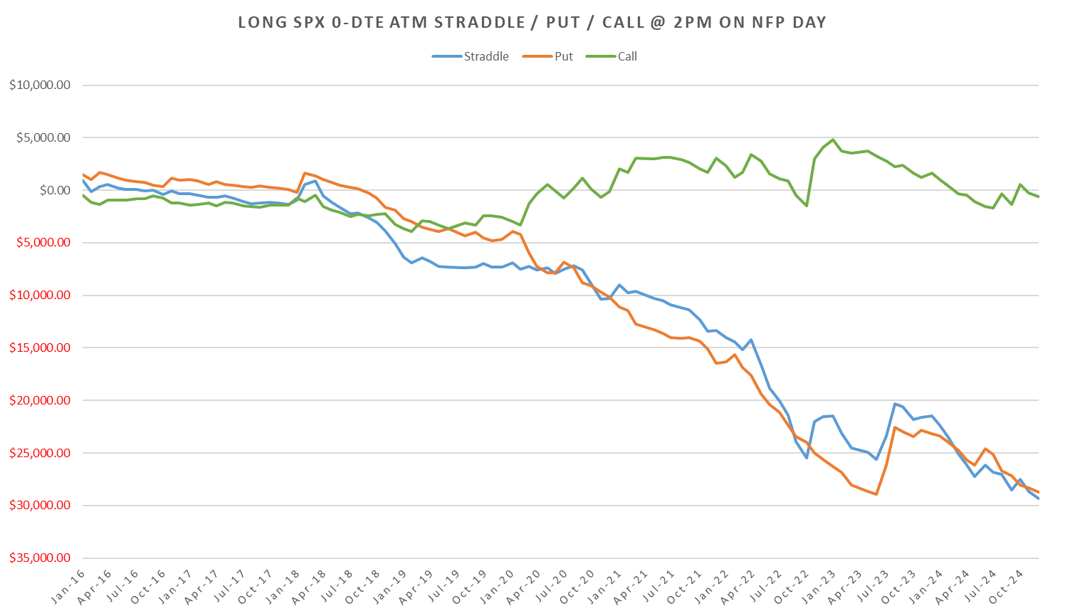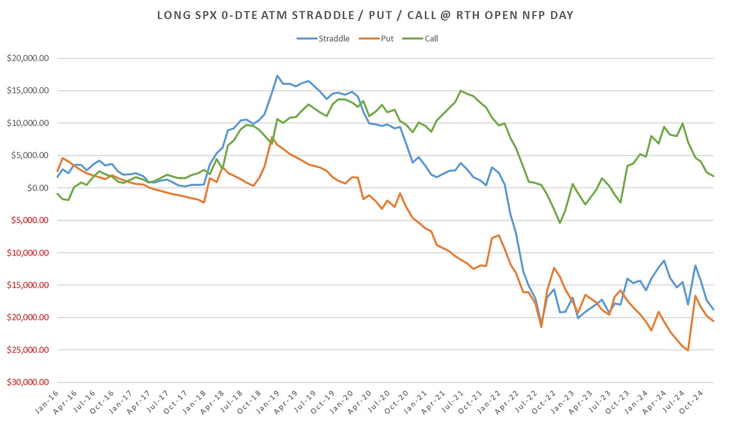 Overall ~ flat if held till eod on the 1-dte straddles since 2022.