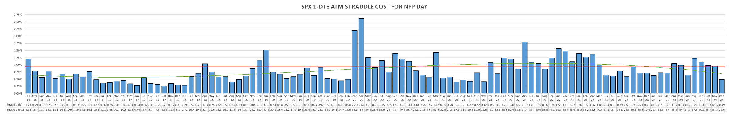 Historic SPX Straddle pricing (red line current):