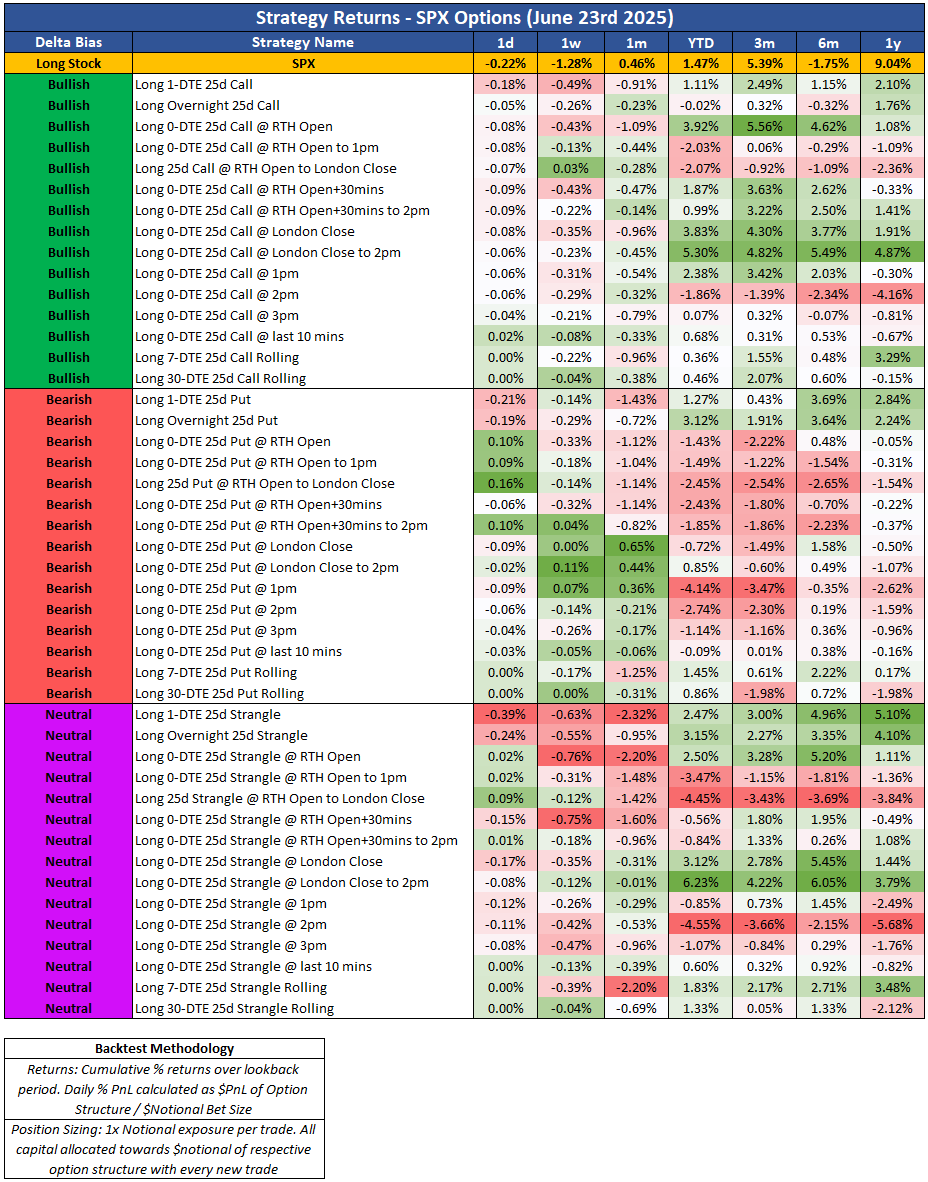 June 2025 Update | Option Strategy Returns & Sharpe + Intraweek Breakdown